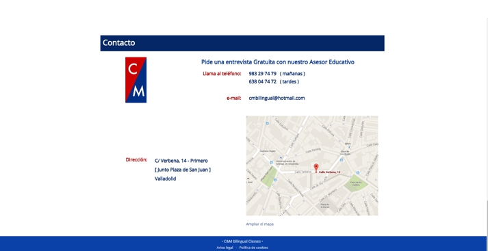 Se trata de un diseño One Page, con todos los contenidos de una web estática tradicional incluidos en una sola página, con un largo scroll.